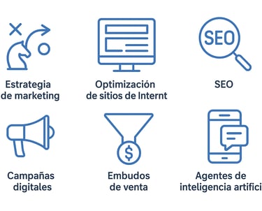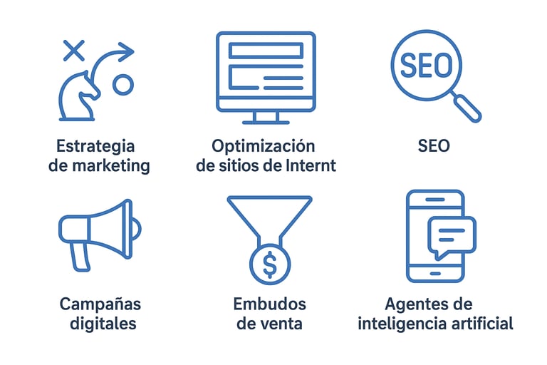 Mi experiencia abarca desde el diseño de estrategias de marketing efectivas hasta la optimización SEO, la creación de procesos de venta y la automatización con inteligencia artificial.